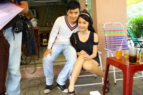 Ca sĩ Nguyễn Hoàng Nam và Phương Trinh xì teen trong giờ nghỉ giải lao
