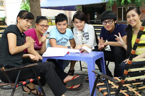 Tất cả cùng tập trung học lại lời thoại trước khi diễn
